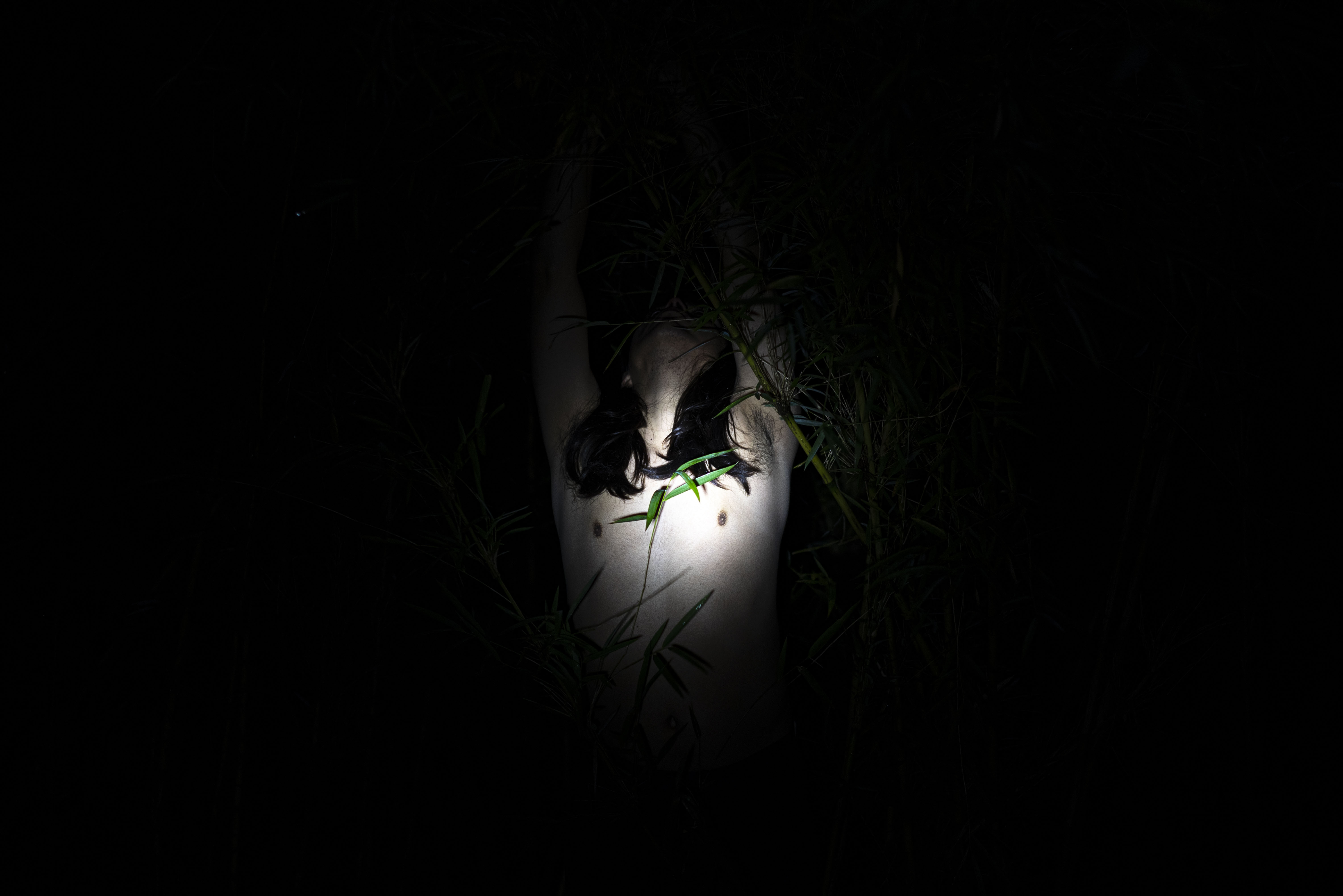 In the same manner, Calfuqueo’s portrayals of nature reveal a world inhabited by unseen forces, challenging binaries and fixed categories that sustain colonial notions of nature and gender. A testament to this is their video The Quilas (2021), where the artist’s body, filmed at night, merges with the quila — an endemic plant that is hermaphroditic and bisexual. According to the video, this plant impeded full colonization of the forest by creating natural barriers; its strength and resilience parallel the Mapuche’s resistance to Western morals and their enduring survival.