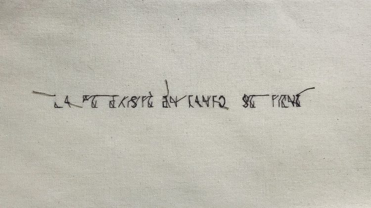 Her interest in language continues in Se me hace tarde para volver, where stitched aphorisms speak of displacement and belonging. These works link her to Chile’s poetic tradition, with references to Raúl Zurita, Jorge Teillier, Violeta Parra, and Gabriela Mistral. Poetry, like textile, became a clandestine tool during oppression — a subterfuge, a secret passage. Zurita’s dense poems denounced dictatorship through hermetic imagery; Alarcón, while less opaque, carries a similar weight. Each stitch, each verse becomes a fragment of grief, a compass pointing south.