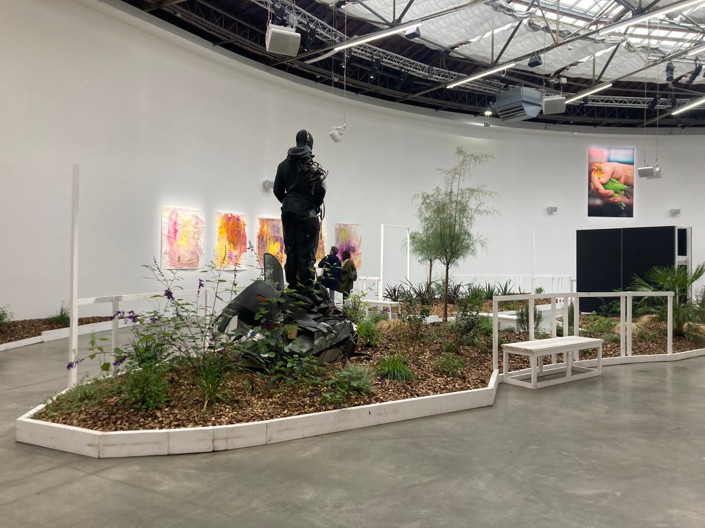 Across the exhibition space Giardini (2024) comprised by a combination of several other artworks such as The whispering of ghosts (2018-2020), confronts the viewer to the hegemonic portrayal of minorities. Whether interviewing a patient from a mental health facility turned into a gardener, interacting with a man reading his prison sentence or photographing the lower part of a body wearing an electronic tag, Bourouissa puts center stage marginalized groups so as to give them back power. Having agency over one’s own image is powerful, with series such as Horse Day (2013-2017) not only he criticizes the invisibilization of entire communities, he also permits these collectives to have their own voice and tell their own stories reversing power relations. An assemblage of this series consisting of 3D sculptures, car parts, horse reins, a video projection among other objects is to be found at the end of the exhibition but it blends with the rest of the works contributing to the harmonization of the entire space. Collectivization for the artist is a step towards restoration and sharing stories of dislocation, of oppression, enables us to become aware of our strength.